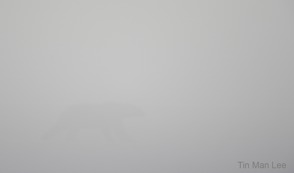 It was such an adrenaline rush to see the bear slowly appearing from the dense fog. Some said it's the emperor's new clothes, some called it "Bearly there bear". I don't know. All I know was that there's a polar bear there. And the camera couldn't auto focus. I had to use manual focus on this extremely foggy day in the Alaskan Arctic. (Buy it if you dare)